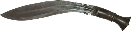 As we made to walk away the kukri wallah approached me and said "You want kukri sahib?" I said "Kukri?" scornfully. He lowered his head, raised his hands and said "No Sahib, pukkha kukri". He then produced exactly what I had been trying to buy. A plain, fully forged, perfectly balanced kukri. I swung it a few times and it felt good so I asked him for the bar. He had been expecting it and produced a mild steel bar just over half an inch square and a foot long with sharp cuts all over it. I swung and brought the blade down on it with all my strength. There was just one more cut and the edge of the blade was unmarked. I had my kukri and it had cost no more than I had been asked for the imitations.