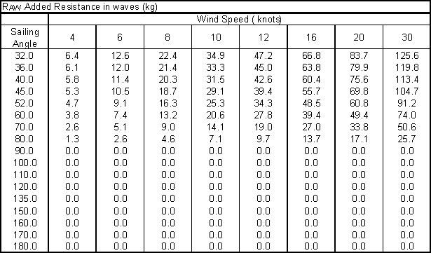 From this it is reasonably safe to conclude that the results from the performance in waves are incorrect as they do not fit in well with the results from the model tests. The model tests showed no real problems when sailing in waves, although the waves were not very large the performance loss indicated by the V.P.P would have appeared in some form during the tests. Also due to the inaccuracies in the added resistance in waves, and also the removal of the effects when travelling down wind, it is hard to obtain any feel for how the yachts would perform in waves from these results.
