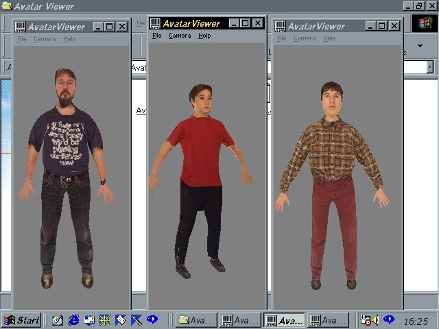 And now, since updating something other in activex within windows I can even get the skateboarding program to run, which animates the avatars in a simple movie sequence. Here are three screenshots: